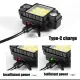 Matériau: ABSCouleur: noirDimensions: 7*2.5*4.6cmCatégorie imperméable: classe de vie imperméableMèche de lampe: COB + XPG + LED bleu rougeMode de charge: TYPE-C de chargeBatterie: batterie au lithium de grande capacité intégrée, 500mAhIndicateur de batterie: le rouge indique la charge, le vert indique la charge complèteMode d’éclairage: lumière forte-lumière faible-flash-lumière bleue rouge-Super haute lumière (presse longue)